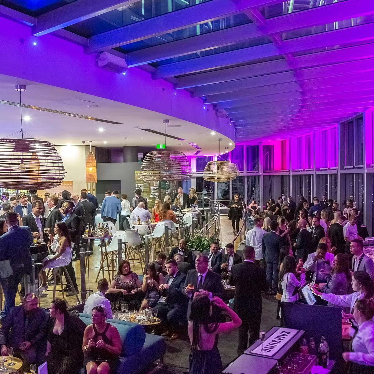 SkyPoint is the perfect venue for pre-dinner canapés and beverages or for exclusive use for large scale corporate events. Exclusive use of the venue can cater for up to 250 guests for a gala dinner and 380 guests for a cocktail function.
