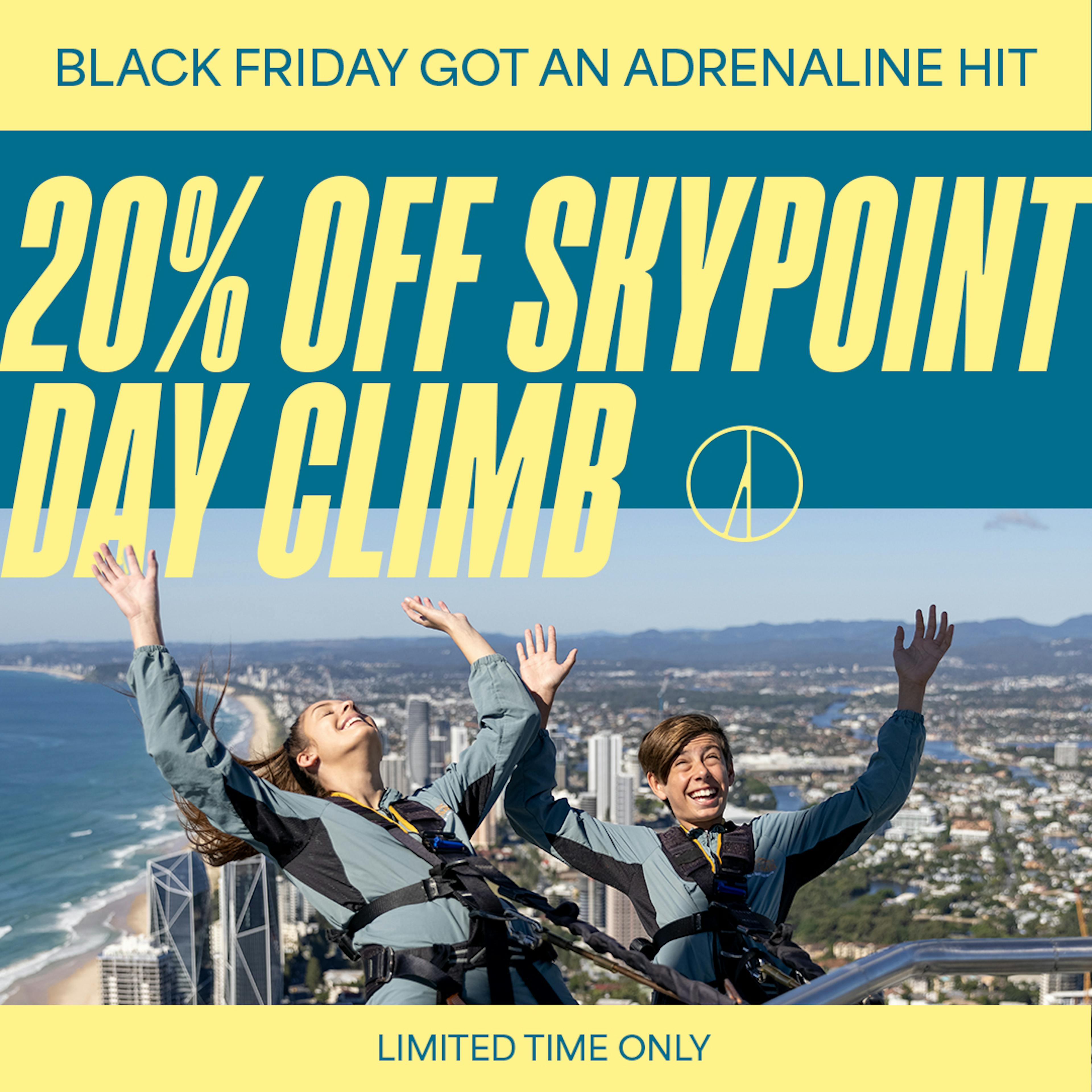 Ready to level up your bragging rights? Score 20% off SkyPoint Day Climbs and take on the Gold Coast’s most epic adventure before the year ends. Think fresh air, killer views, and that “I just climbed a skyscraper” energy—all for less. Only for a limited time!