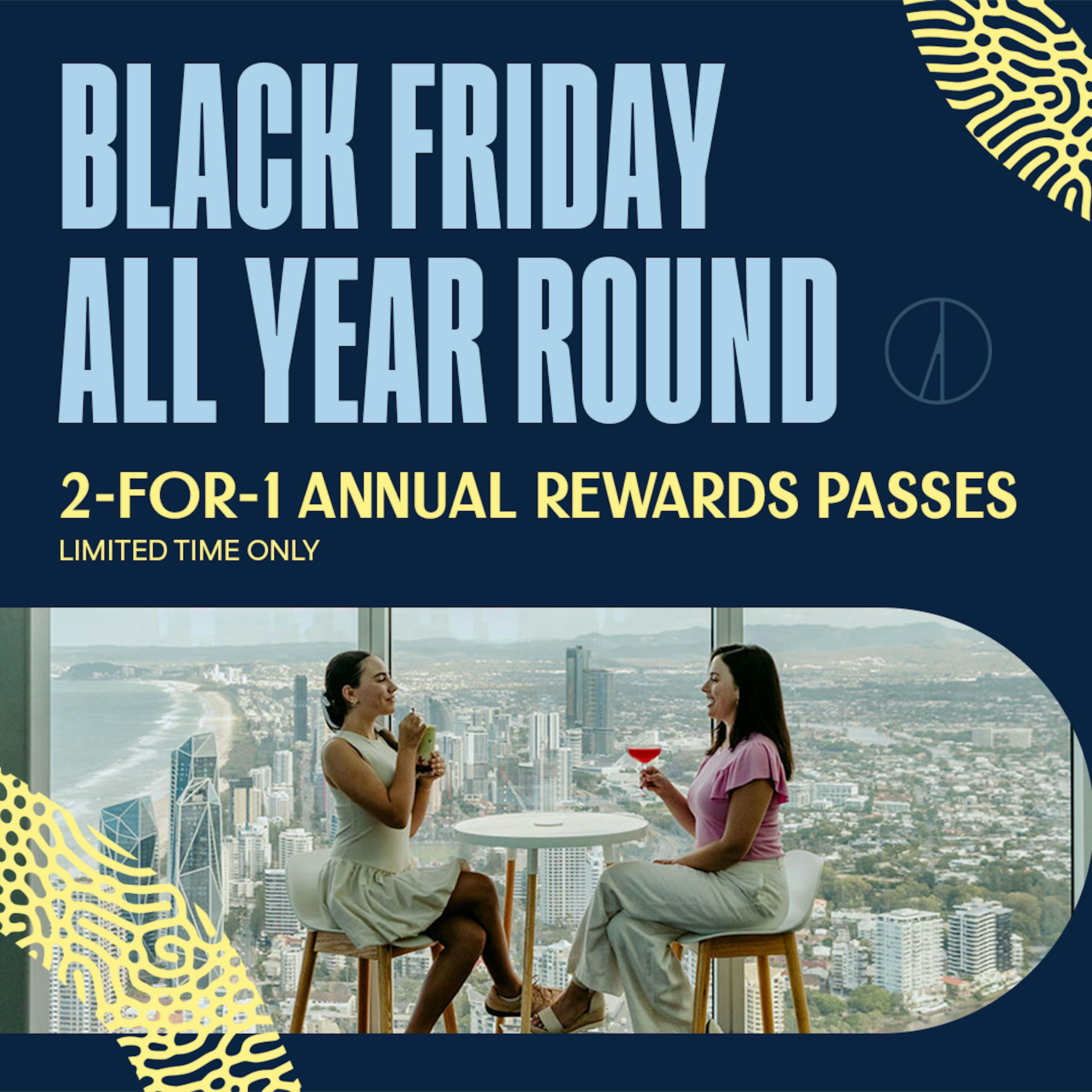 Twice the views, twice the vibes! Snag two SkyPoint Annual Rewards Cards for the price of one and enjoy a whole year of unlimited visits, golden-hour magic, and member-only perks. Bring your bestie, your partner, or your mum—just don’t miss this sky-high steal.