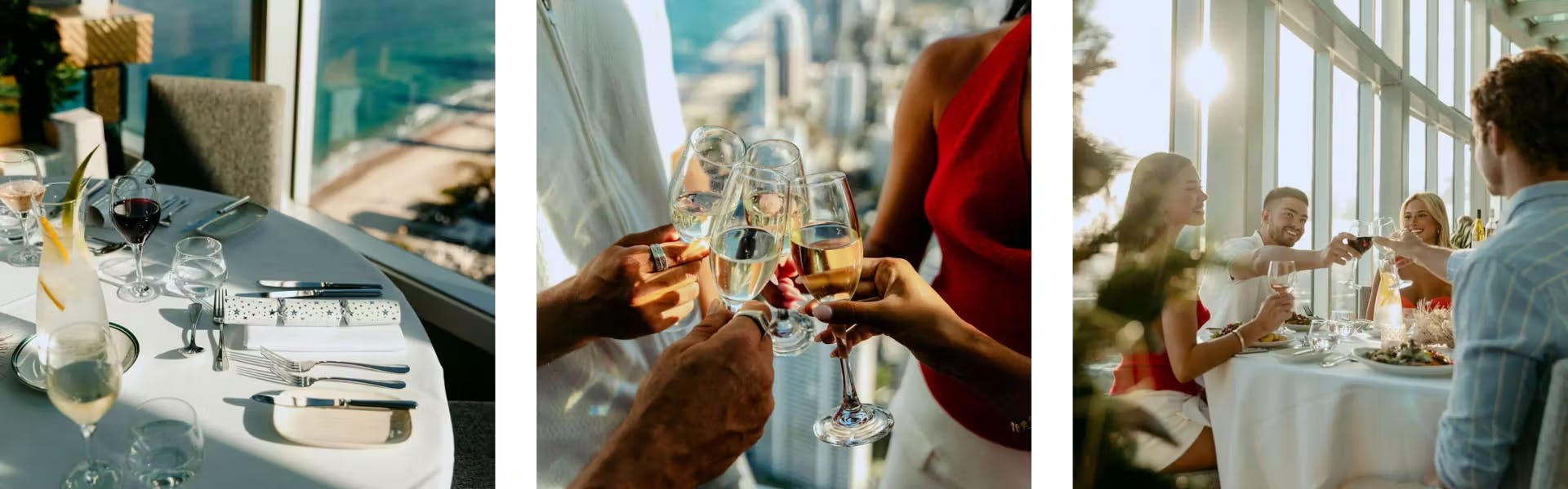 Your ticket to Christmas in the Clouds includes everything you need for an unforgettable night—an indulgent four-course festive feast, a premium 4.5-hour beverage package, and a lively atmosphere brought to life with live music and roving performers. And of course, Santa will be making a special appearance to spread some extra holiday cheer. All of this, set 230 metres above the Gold Coast with breathtaking 360-degree views.