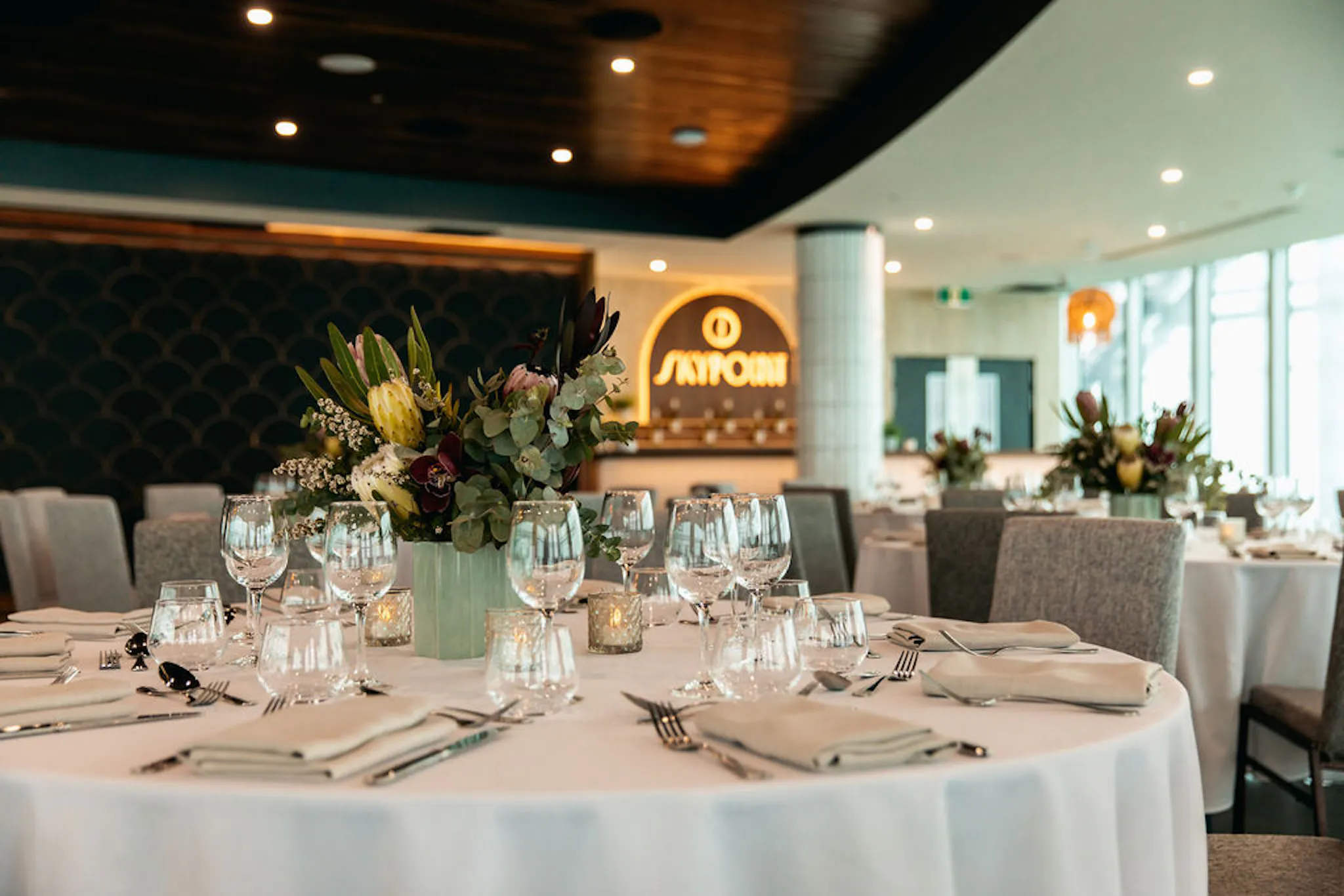 SkyPoint is the perfect venue for pre-dinner canapés and beverages or for exclusive use for large scale corporate events. Exclusive use of the venue can cater for up to 250 guests for a gala dinner and 380 guests for a cocktail function.